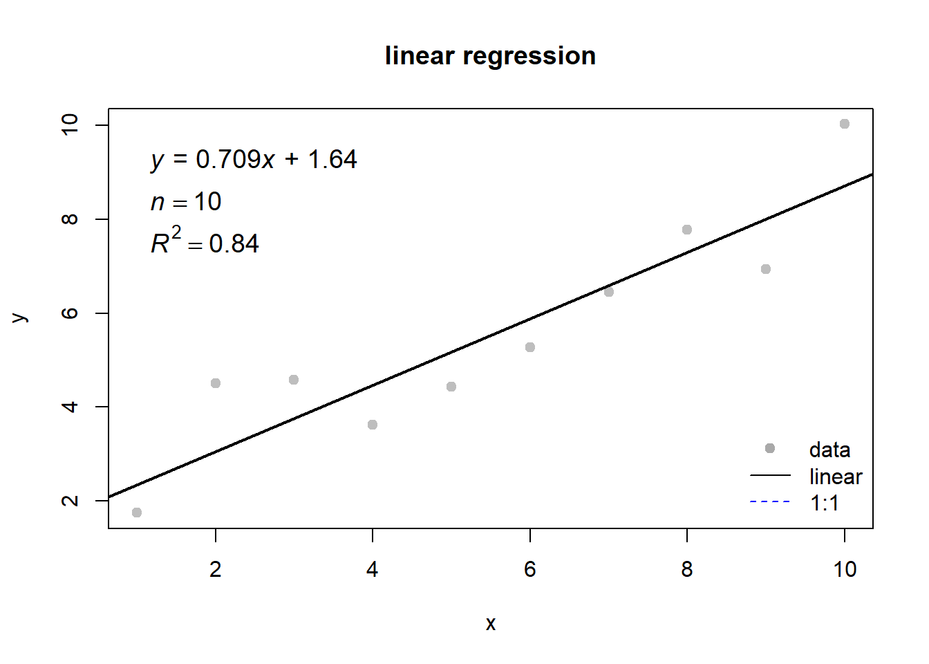 我常常需要做线性拟合, 每次又是作图又是添加拟合方程, 繁琐. 现在, beginr 里的一个 plotlm()函数就搞定.