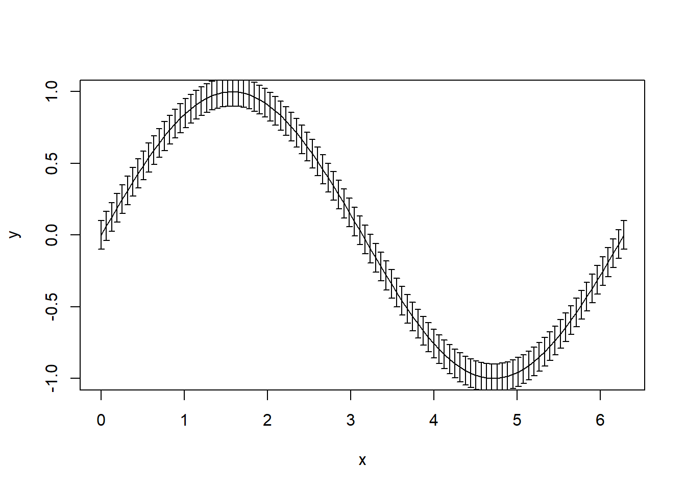 beginr::errorbar(x, y, yupper = 0.1, ylower = 0.1)